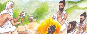 based on “Varna and Jaatis” and that this concept was put together by the Rishis. But how did they do it? Imagine a picture of an ancient school in India,called “Gurukuls.” Here the Rishis and some other teachers called “Aacharya” used to teach students. Various subjects were taught. The course design was aimed at personality development and not just passing information. Young kids were taught all essential basic subjects irrespective of their Jaatis. During this time the Rishis used to minutely observe every student and they used to advise them on what subjects to choose for specialization. This advice was based on the interests of the students and their mental, emotional, and physical capacities.